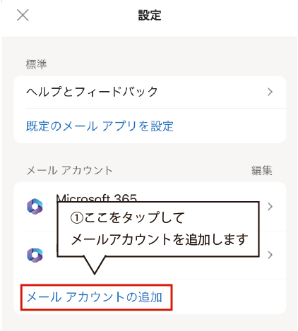 1.「メールアカウントの追加」をタップします。![]() |