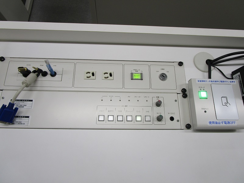 オンライン授業システム 可搬カメラ用ケーブル設置教室。